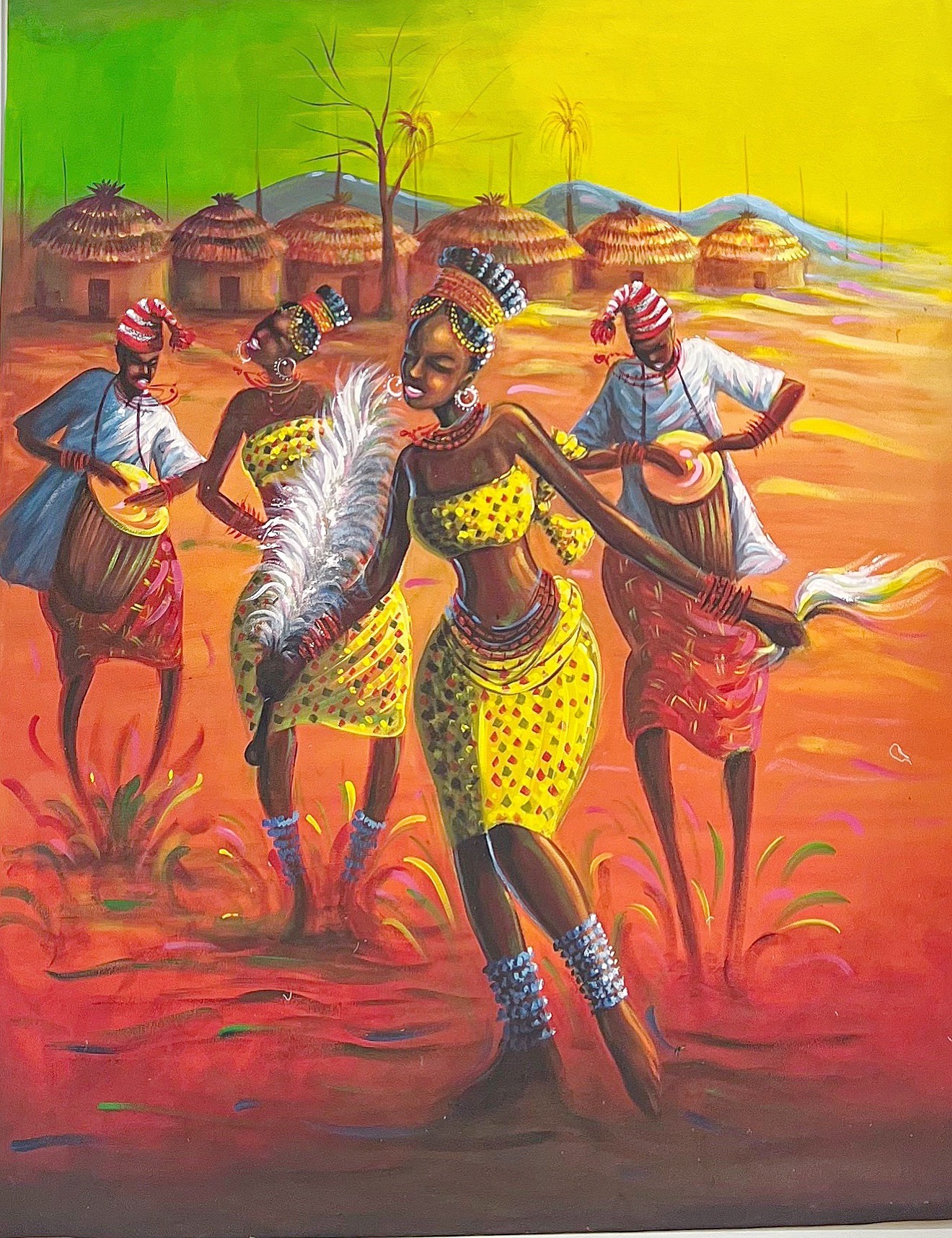 Tale by the Moonlight captures a timeless scene of tales telling. An elderly man sits at the heart of a small gathering, his expressive hands and gentle gaze drawing the attention of children seated around him on the bare earth. Their faces, illuminated by moonlight, reflect wonder and curiosity as they listen intently. Set in a serene rural village, the piece evokes nostalgia for the age-old custom of storytelling.